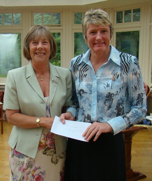 Carol Delf with Valerie Douglas of Weston Park Golf Club presenting a cheque of £160 for the Junior Girls. |