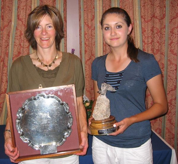 Photo shows Tracy and Rebecca with the Championship Salver and Team Trophy. Unfortunately Amy had already left - her mother has broken her leg and she is looking after her.