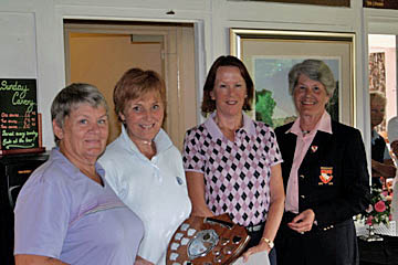 County Foursomes Debbie Ogaard-Nielsen and Karen Young (Eaton) with County President Anne Mcharg
